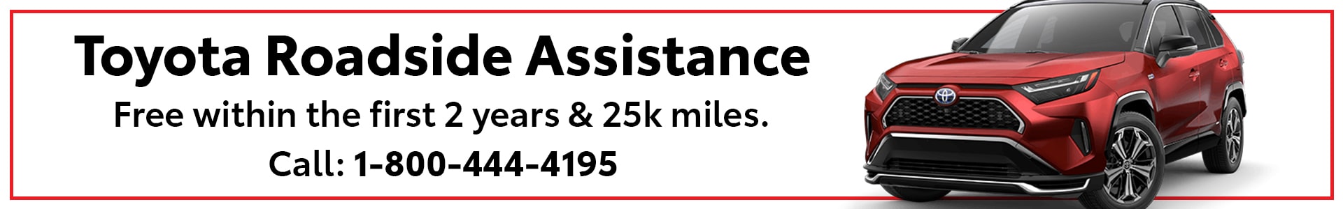 The 24-hour roadside assistance plan covers battery jump start tire service 1 emergency fuel delivery lockout protection towing 2 and winching 3 for two years and. If you find yourself in an emergency help is only a quick phone call away The Toyota Roadside Assistance phone number is 1-800-444-4195. Were here for you 24 hours a day 365 days a year.
